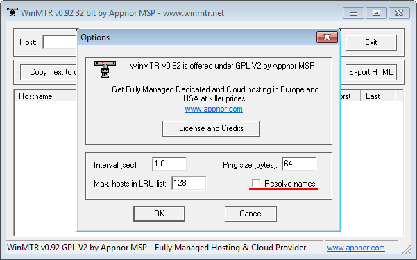 Актуальная версия WinMTR