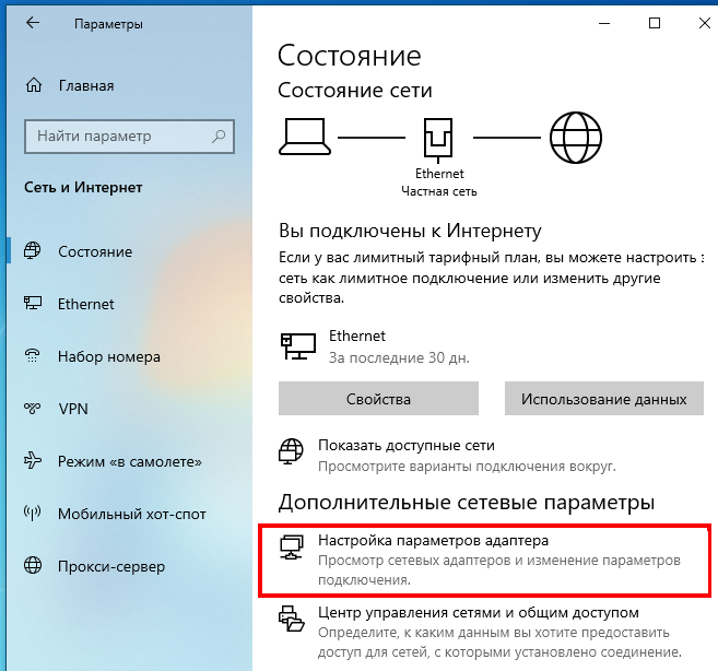 1.1. Сначала настроим сетевую карту компьютера на автоматическое получение сетевых настроек в Windows 10.