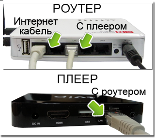 1.2 Соедините плеер с роутером кабелем, который мы дарим с плеером